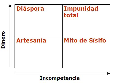 Ésta es la representación visual que denominaré matriz DI ( Dinero Incompetencia).
